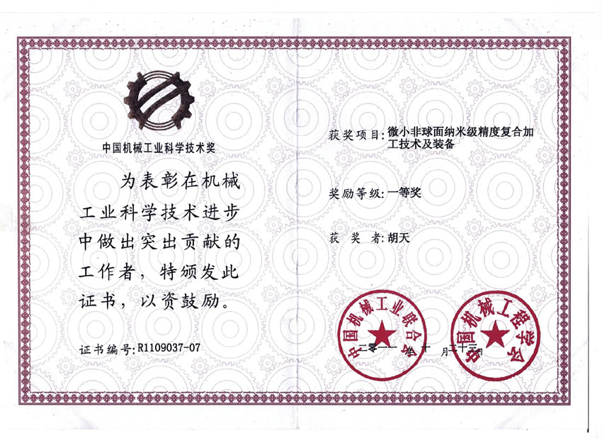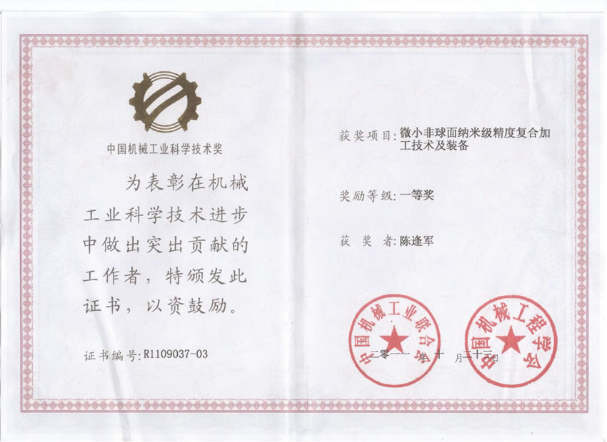 中國(guó)機(jī)械工業(yè)科學(xué)技術(shù)獎(jiǎng)一等獎(jiǎng)