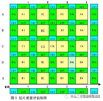 將一個Reticle從晶圓中取出,用英文字母A、B、C…來代表芯片在Reticle中所處的行號,而用數(shù)字1、2、3…代表芯片在Reticle中所處的列號,每一個芯片在一個Reticle中就可以被唯一地標示。如A1、B3等。在每一個芯片的四周有4條邊和4個頂點,如果用A1T(A1 Top)代表A1芯片上方的街區(qū),A1L(A1 Left) 代表A1芯片左邊的街區(qū),CA1(Corner A1)代表A1芯片左上方的街區(qū)交叉部分。這樣,整個晶圓的切割質(zhì)量就可以通過一個Reticle內(nèi)XT、XL、CX(X代表芯片的坐標)的切割狀況表達清楚。這個質(zhì)量評估矩陣的另外一個優(yōu)點是可以很方便地在晶圓上找到一個具有特定測試圖案的芯片并觀察其切割質(zhì)量。也可離線對某個測試圖案及其切割質(zhì)量進行分析或改進。在此之前,需要經(jīng)驗和技巧來確定一個Reticle。