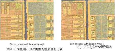 圖6 不同類型的劃片刀切割質(zhì)量的比較