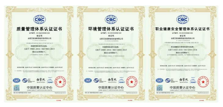 近日,合肥艾凱瑞斯智能裝備有限公司順利通過(guò)了質(zhì)量、環(huán)境和職業(yè)健康安全管理體系認(rèn)證,成功獲得ISO9001質(zhì)量管理體系認(rèn)證證書(shū)、ISO45001職業(yè)健康安全管理體系認(rèn)證證書(shū)及ISO14001環(huán)境管理體系認(rèn)證證書(shū),標(biāo)志著我司將在“精細(xì)化、制度化、規(guī)范化”管理方面邁上新臺(tái)階,為進(jìn)一步提升企業(yè)管理水平、增強(qiáng)企業(yè)核心競(jìng)爭(zhēng)力奠定堅(jiān)實(shí)基礎(chǔ)。