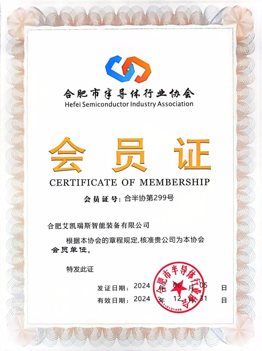 近期,合肥艾凱瑞斯智能裝備有限公司順利通過(guò)合肥市半導(dǎo)體行業(yè)協(xié)會(huì)的審查,正式成為合肥市半導(dǎo)體行業(yè)協(xié)會(huì)的一員。