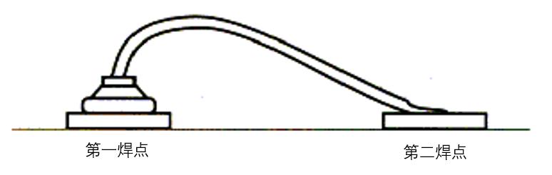 引線鍵合機是用于將芯片和基板通過金屬引線進行通訊連接的一款半導(dǎo)體封裝設(shè)備。從鍵合的原理來劃分,有熱壓鍵合、超聲鍵合和熱超聲鍵合三種類型。熱壓鍵合是引線在熱壓頭的壓力作用下,高溫加熱焊絲(>250oC)發(fā)生形變,通過對時間、溫度、壓力的調(diào)控實現(xiàn)鍵合;超聲鍵合是在室溫下,在被焊接表面施加壓力和超聲頻率的彈性振動,破壞被焊接件之間的氧化層,使兩固態(tài)金屬牢固鍵合;熱超聲鍵合是熱壓鍵合和超聲鍵合的組合,可降低加熱溫度、提高鍵合強度,有利于器件的可靠性,應(yīng)用最為廣泛。從鍵合工藝來劃分,又分為球焊和楔焊,其中球焊鍵合的一焊點是由高壓電弧放電將鍵合絲熔化,在表面張力的作用下形成球形,然后將球壓焊到芯片的電極上,再從一焊點抽出彎曲的金線再壓焊到相應(yīng)的位置,形成二焊點。而楔焊是將兩個楔形焊點壓下形成連接,不需要燒球工藝。下圖1和圖2是兩種鍵合工藝的焊點示意圖。球焊鍵合常用的鍵合絲為金線、銀線和銅線,而楔焊鍵合絲常用為金線、鋁線,金帶或鋁帶。